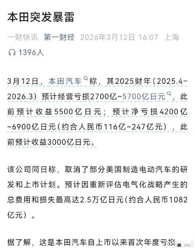 本田突然就爆雷了,成了最近几天车圈讨论最多的惊天大瓜,上市69年来首次出现年度巨亏。